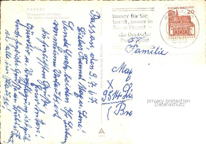 72283616 alte Postkarte PAssAU Bayern Donaupartie mit Hafen Bruecke Kirche postalisch gelaufen Erhaltung siehe scans KatCode: 11110009262000