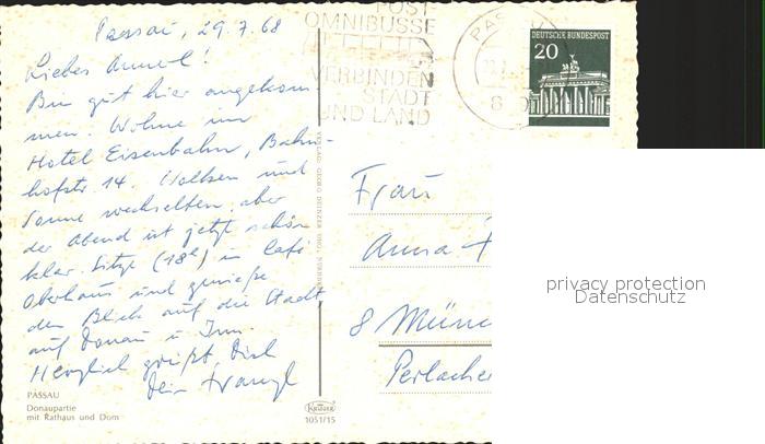 72146438 alte Postkarte PAssAU Bayern Donaupartie mit Rathaus und Dom postalisch gelaufen Erhaltung siehe scans KatCode: 11110009262000