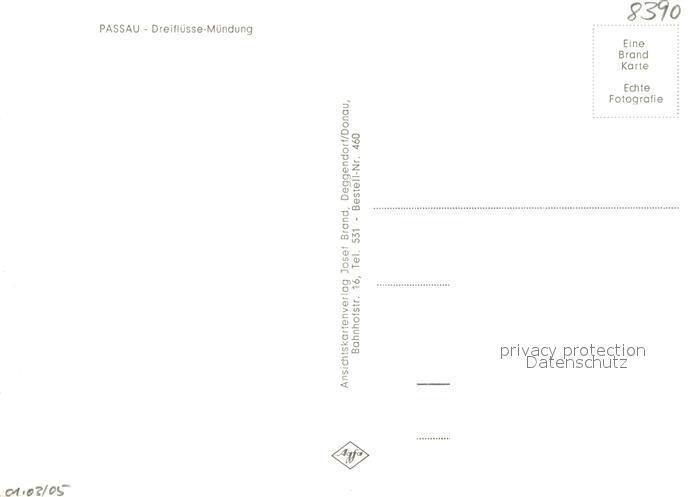 72954455 PAssAU Bayern Dreifluessemuendung Zusammenfluss von Donau Inn und Ilz postalisch nicht gelaufen Erhaltung siehe scans [FriedD77] KatCode: 11110009262000