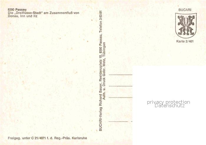 72783862 PAssAU Bayern Dreifluessestadt am Zusammenfluss von Donau Inn und Ilz Fliegeraufnahme postalisch nicht gelaufen Erhaltung siehe scans [FriedD77] KatCode: 11110009262000