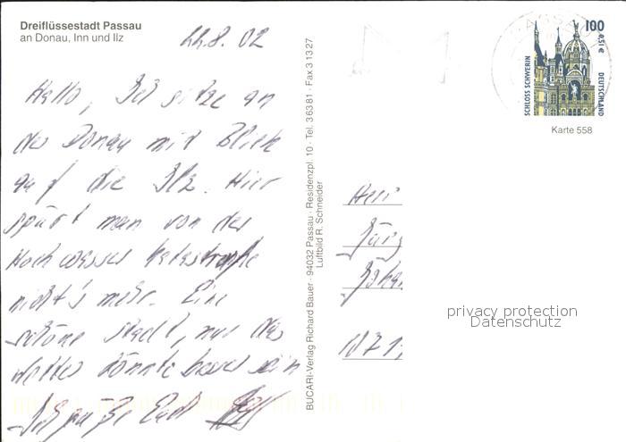 72235339 alte Postkarte PAssAU Bayern Dreifluessestadt an Donau Inn und Ilz Fliegeraufnahme postalisch gelaufen Erhaltung siehe scans KatCode: 11110009262000