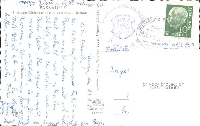 72291853 alte Postkarte PAssAU Bayern Dreifluessestadt Ilz Donau Inn Blick vom Oberhaus Niederhaus Ilzstadt postalisch gelaufen Erhaltung siehe scans KatCode: 11110009262000