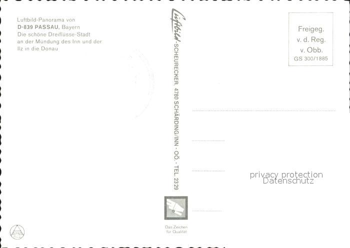 72469227 PAssAU Bayern Dreifluessestadt Muendung Inn Donau Ilz Fliegeraufnahme postalisch nicht gelaufen Erhaltung siehe scans KatCode: 11110009262000
