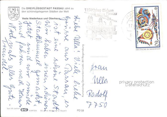 72381479 alte Postkarte PAssAU Bayern Dreifluessestadt Veste Niederhaus und Oberhaus postalisch gelaufen Erhaltung siehe scans KatCode: 11110009262000