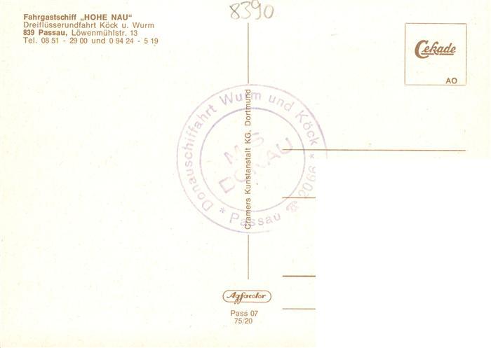 73913297 PAssAU Bayern Fahrgastschiff Hohe Nau Dreifluesserundfahrt Koeck und Wurm postalisch nicht gelaufen Erhaltung siehe scans [FriedD77] Frie Katcode 11110009262000