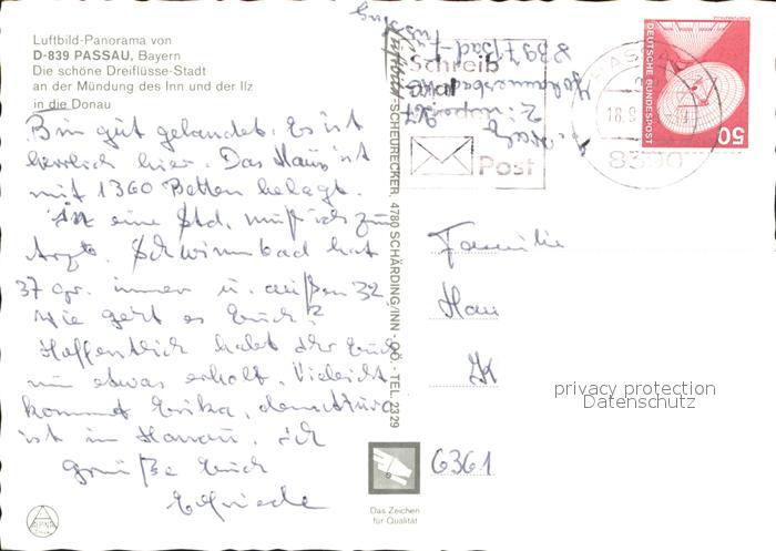 71952522 alte Postkarte PAssAU Bayern Fliegeraufnahme postalisch gelaufen Erhaltung siehe scans KatCode: 11110009262000
