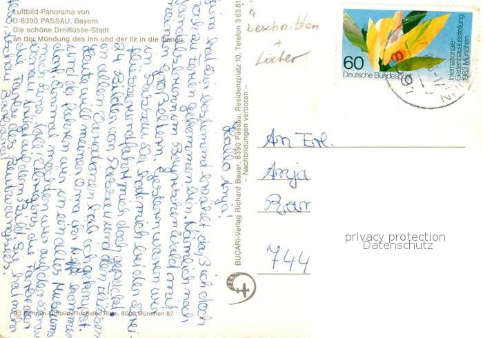 72941100 alte Postkarte PAssAU Bayern Fliegeraufnahme Dreifl?ssestadt Inn Ilz Donau postalisch gelaufen Erhaltung siehe scans [LiesaD40] KatCode: 11110009262000