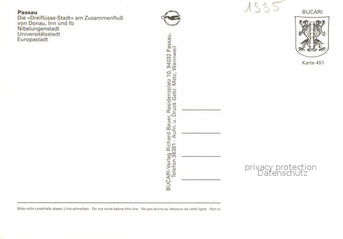 72888154 PAssAU Bayern Fliegeraufnahme Dreifluesse Stadt Zusammnefluss Donau Inn Ilz postalisch nicht gelaufen Erhaltung siehe scans [LiesaD40] KatCode: 11110009262000