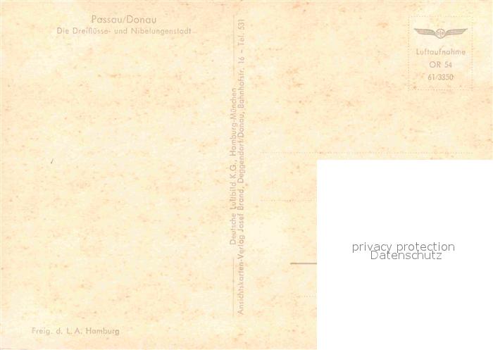 72915186 PAssAU Bayern Fliegeraufnahme Dreifluesse- und Nibelungenstadt postalisch nicht gelaufen Erhaltung siehe scans [LiesaD40] KatCode: 11110009262000