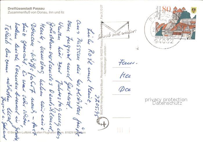 72264661 alte Postkarte PAssAU Bayern Fliegeraufnahme Dreifluessestadt Donau Inn Ilz postalisch gelaufen Erhaltung siehe scans KatCode: 11110009262000