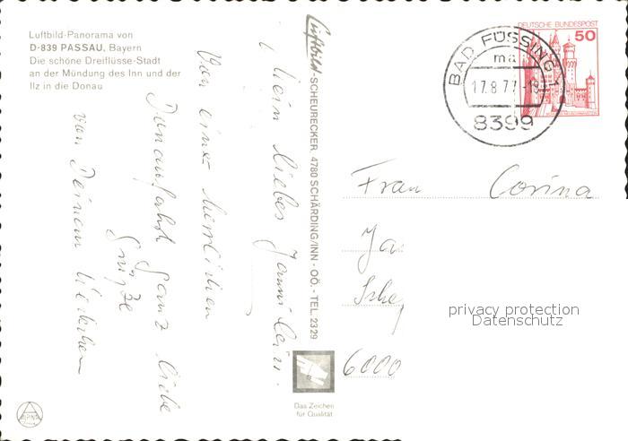 71893739 alte Postkarte PAssAU Bayern Fliegeraufnahme Inn Donau Ilz postalisch gelaufen Erhaltung siehe scans KatCode: 11110009262000