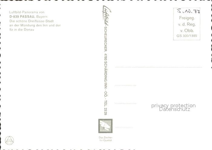 71946428 PAssAU Bayern Fliegeraufnahme Inn Donau Ilz postalisch nicht gelaufen Erhaltung siehe scans KatCode: 11110009262000