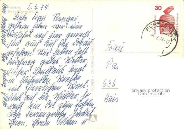 72530900 alte Postkarte PAssAU Bayern Fliegeraufnahme mit Donau und Inn postalisch gelaufen Erhaltung siehe scans [LiesaD40 kt094box] KatCode: 11110009262000