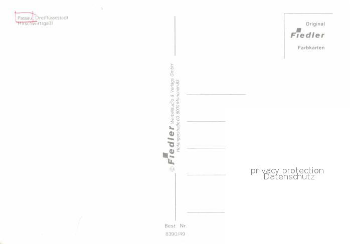 72765362 PAssAU Bayern Hirschwirtsgassl Dreifluessestadt postalisch nicht gelaufen Erhaltung siehe scans [FriedD77] KatCode: 11110009262000