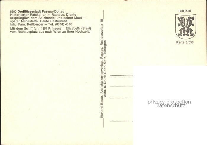 72296971 PAssAU Bayern Historischer Ratskeller im Rathaus Restaurant Historisches Rathaus postalisch nicht gelaufen Erhaltung siehe scans KatCode: 11110009262000