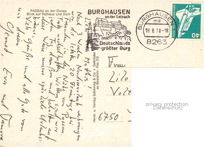 72853671 alte Postkarte PAssAU Bayern Rathaus Dom postalisch gelaufen Erhaltung siehe scans [AndreD76] KatCode: 11110009262000
