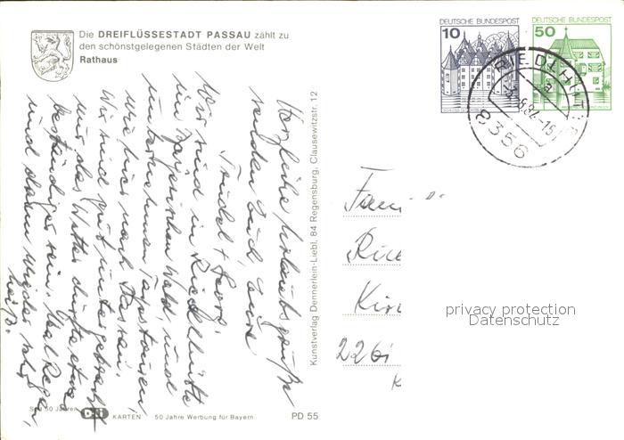 72332293 alte Postkarte PAssAU Bayern Rathaus Dreifluessestadt Ausflugsdampfer postalisch gelaufen Erhaltung siehe scans KatCode: 11110009262000