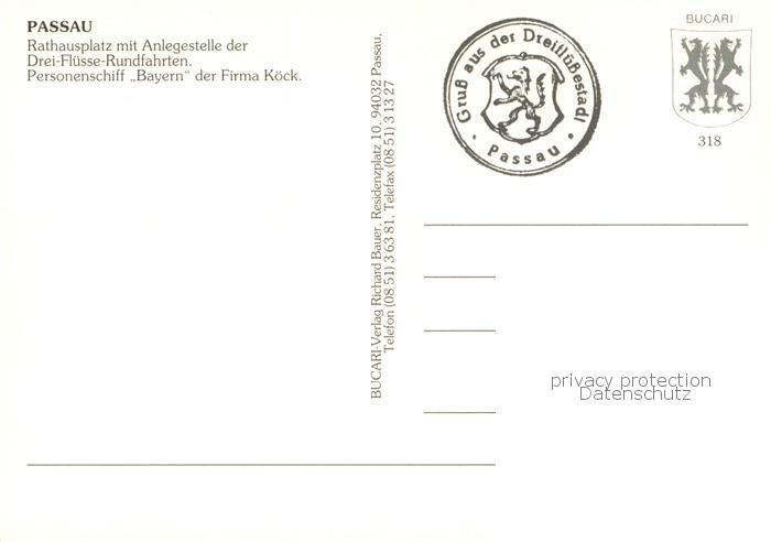 73776592 PAssAU Bayern Rathausplatz m. Anlegestelle d. Drei-Fluesse-Rundfahrten – Personenschiff Bayern postalisch nicht gelaufen Erhaltung siehe scans [LiesaD40] Lies Katcode 11110009262000