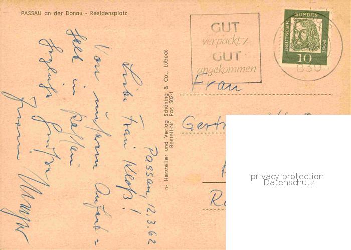 72719417 alte Postkarte PAssAU Bayern Residenzplatz Brunnen Dom Kirche postalisch gelaufen Erhaltung siehe scans [FriedD77] KatCode: 11110009262000