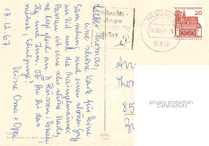 72837167 alte Postkarte PAssAU Bayern Residenzplatz mit Blick zum Dom postalisch gelaufen Erhaltung siehe scans [FriedD77] KatCode: 11110009262000
