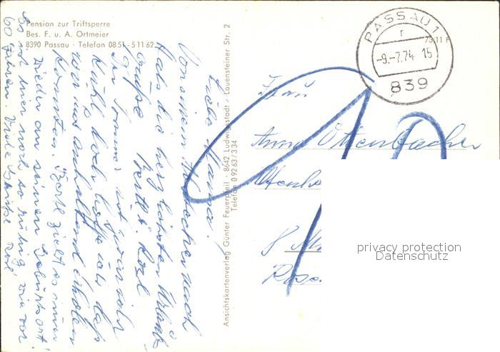 72146588 alte Postkarte PAssAU Bayern Triftsperre Teilansichten Pension zur Triftsperre postalisch gelaufen Erhaltung siehe scans KatCode: 11110009262000