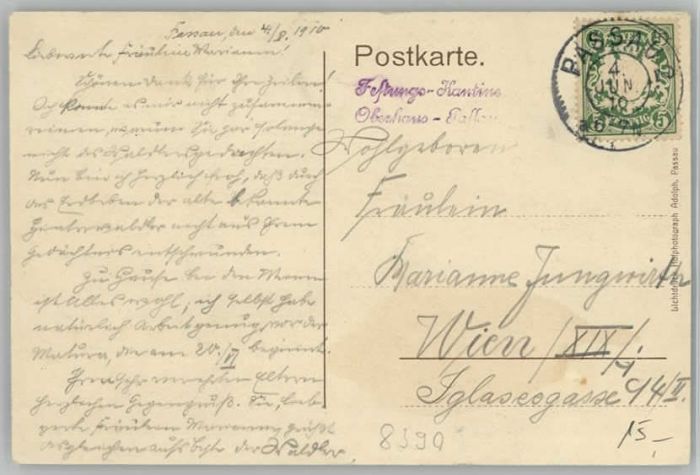 40222622 PAssAU Bayern Turm Oberhaus x 1910 postalisch gelaufen Alte Ansichtskarte Postkarte alte Postkarte Katcode 11110009262000