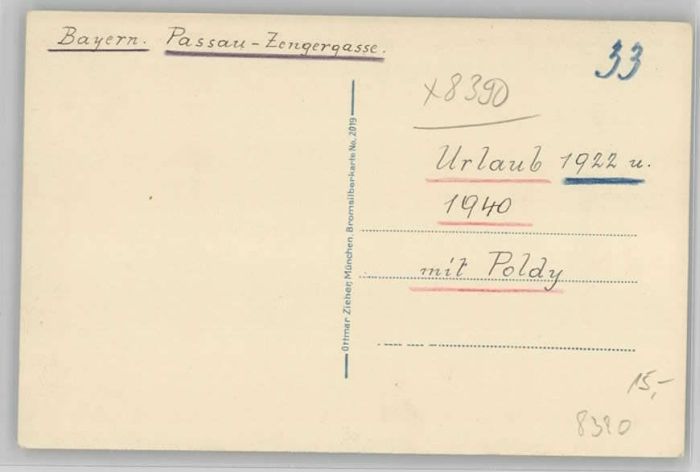 40222610 PAssAU Bayern Zengergasse postalisch nicht gelaufen Alte Ansichtskarte Postkarte Katcode 11110009262000