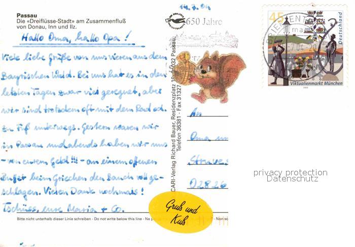 72812416 alte Postkarte PAssAU Bayern Zusammenfluss Donau Inn Ilz postalisch gelaufen Erhaltung siehe scans [NatalD47] KatCode: 11110009262000