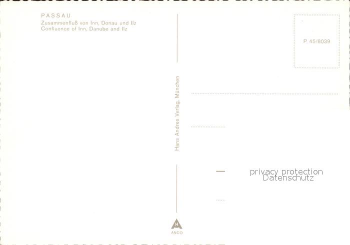 72227025 PAssAU Bayern Zusammenfluss von Inn Donau Ilz postalisch nicht gelaufen Erhaltung siehe scans KatCode: 11110009262000