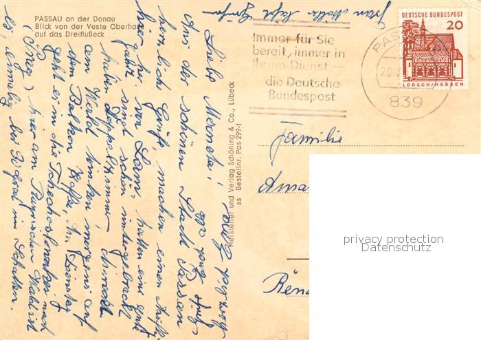 73129988 alte Postkarte Passau Blick von Veste Oberhaus auf Dreiflusseck postalisch gelaufen Erhaltung siehe scans [KathaD81] KatCode: 11110009262000