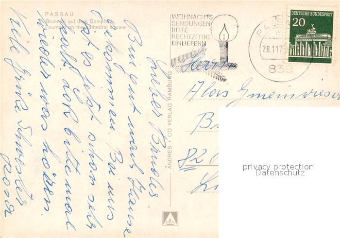 73257367 alte Postkarte Passau Brunnen Domplatz postalisch gelaufen Erhaltung siehe scans [FriedD77] KatCode: 11110009262000