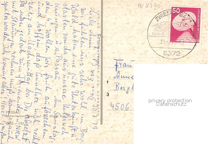 73093659 alte Postkarte Passau Dom postalisch gelaufen Erhaltung siehe scans [NatalD47] KatCode: 11110009262000