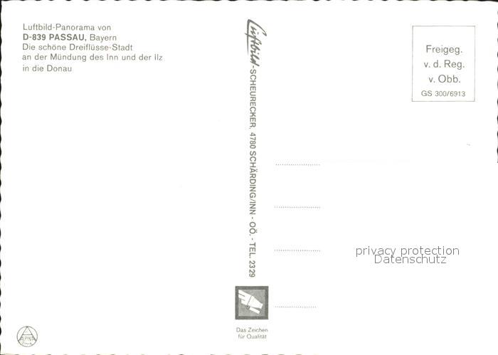 Passau Dreifluessestadt Muendung Inn Ilz Donau Fliegeraufnahme postalisch nicht gelaufen Erhaltung siehe scans