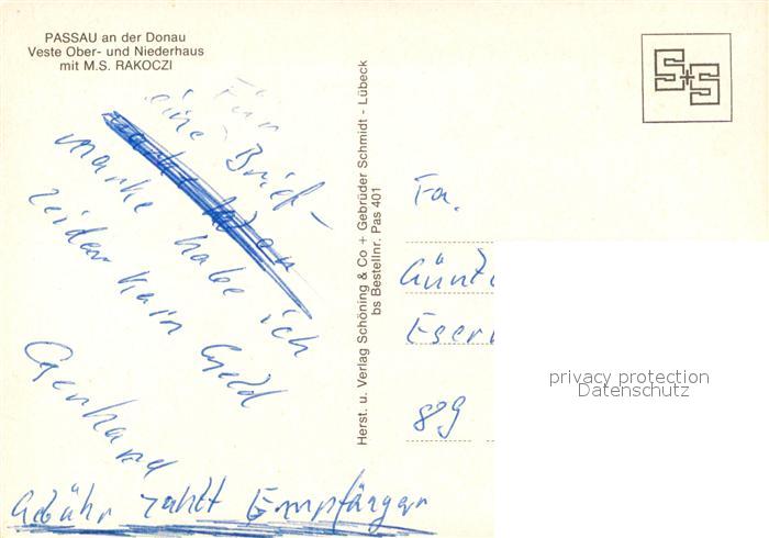 73249630 Passau Veste Ober- Niederhaus MS Rakoczi postalisch nicht gelaufen Erhaltung siehe scans [NatalD47] KatCode: 11110009262000
