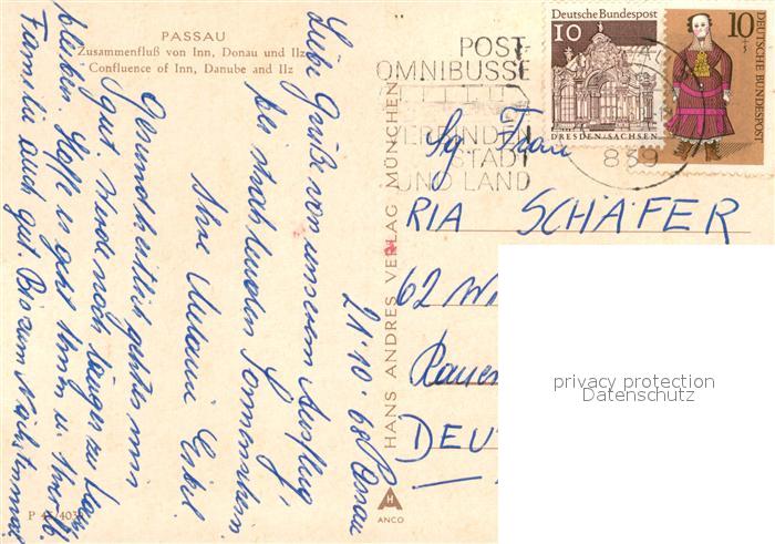 73181880 alte Postkarte Passau Zusammenfluss von Inn Donau und Ilz postalisch gelaufen Erhaltung siehe scans [FriedD77] KatCode: 11110009262000