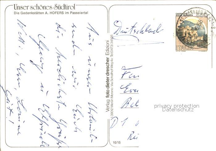 old postcard Passeier Gedenkstaetten Andreas Hofers Kapellen postalisch gelaufen Erhaltung siehe scans