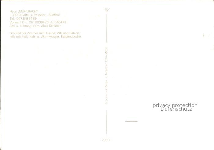 Passeier Haus Muehlbach postalisch nicht gelaufen Erhaltung siehe scans