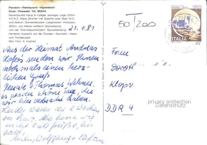 old postcard Passeier Pension Restaurant Alpenland postalisch gelaufen Erhaltung siehe scans