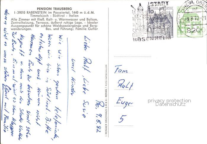 old postcard Passeier Rabenstein Pension Trausberg postalisch gelaufen Erhaltung siehe scans
