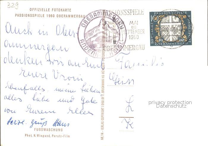 alte Postkarte Passionsspiele Oberammergau Fusswaschung postalisch gelaufen Erhaltung siehe scans
