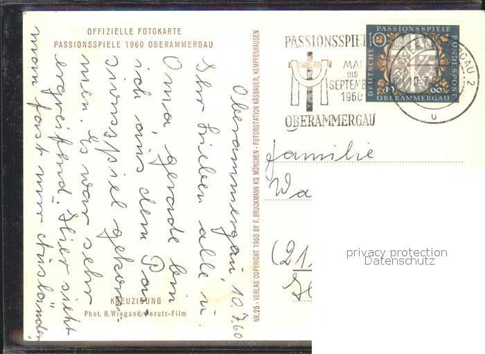 alte Postkarte Passionsspiele Oberammergau Kreuzigung postalisch gelaufen Erhaltung siehe scans