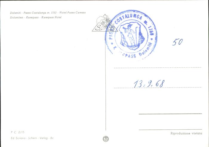 Passo Costalunga Karerpass-Hotel postalisch nicht gelaufen Erhaltung siehe scans