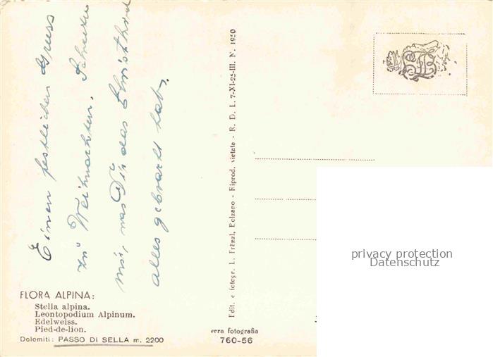 74079712 Passo di Sella Selva Val Gardena IT Stella alpina Edelweiss postalisch nicht gelaufen Erhaltung siehe scans [WerneD78] KatCode: 11240