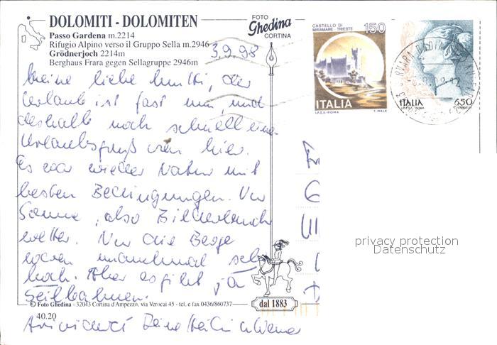 old postcard Passo Gardena Groednerjoch Berghaus Frara mit Sellagruppe postalisch gelaufen Erhaltung siehe scans [LiesaD40]