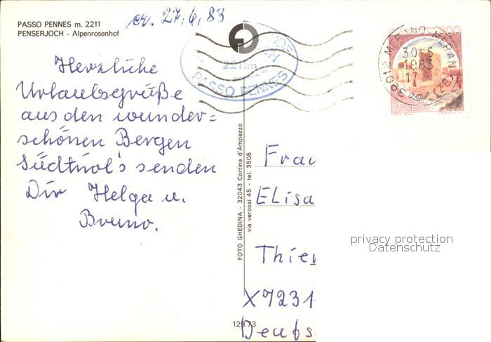 old postcard Passo Pennes Penserjoch Gebirgspass Alpenrosenhof postalisch gelaufen Erhaltung siehe scans
