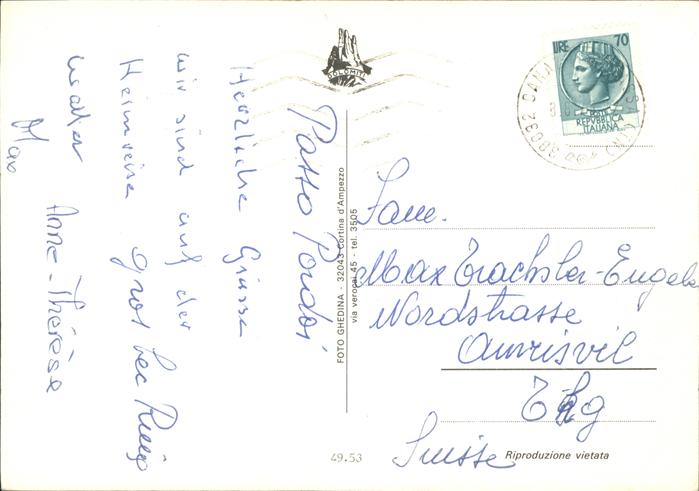 old postcard Passo Pordoi postalisch gelaufen