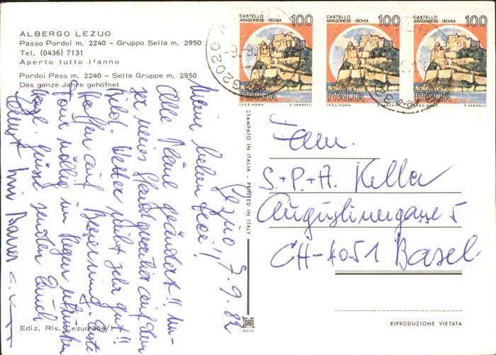 old postcard Passo Pordoi Mit Ristorante Gasthof Lezuo postalisch gelaufen