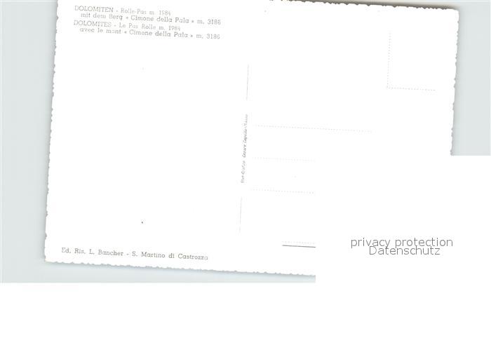 Passo Rolle Col Cimone della Pala postalisch nicht gelaufen Erhaltung siehe scans