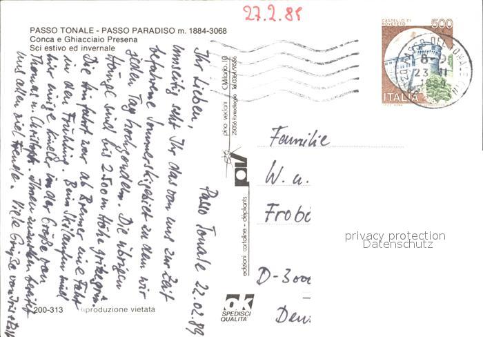 old postcard Passo Tonale Conca Ghiacciaio Presena postalisch gelaufen Erhaltung siehe scans
