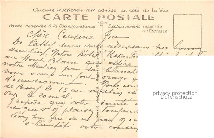 Passy Bonneville Hôtel Pension Notre Famille postalisch nicht gelaufen Erhaltung siehe scans [FriedD77]